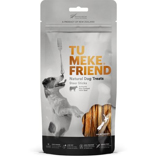 Our chewy Steer Sticks are great for dental health, and high in protein for a shiny coat. These 100% pure beef treats are long-lasting too. They ca...