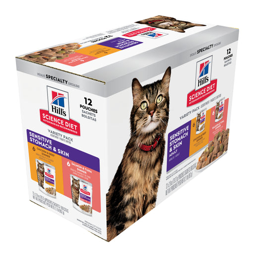 View full detailsHill’s Science Diet Adult Sensitive Skin & Stomach Variety Pack Cat Food Pouches 12x79g